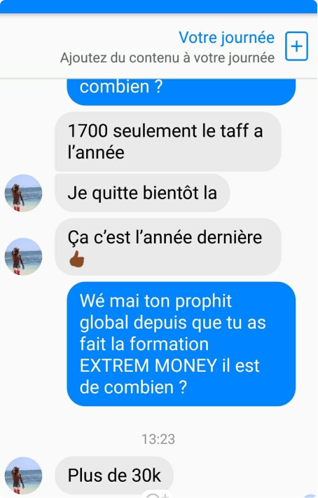 "Aujourd'hui je ,me fait entre 400 à 600 Euros par semaines et des fois par jours !!!"